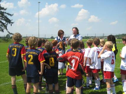 Bei mittlerweile 30 Grad nahmen sogleich die E2-Junioren den Ball kunstvoll zum Fuß und gewannen gegen die Jungs aus Kammer mit 9:1.